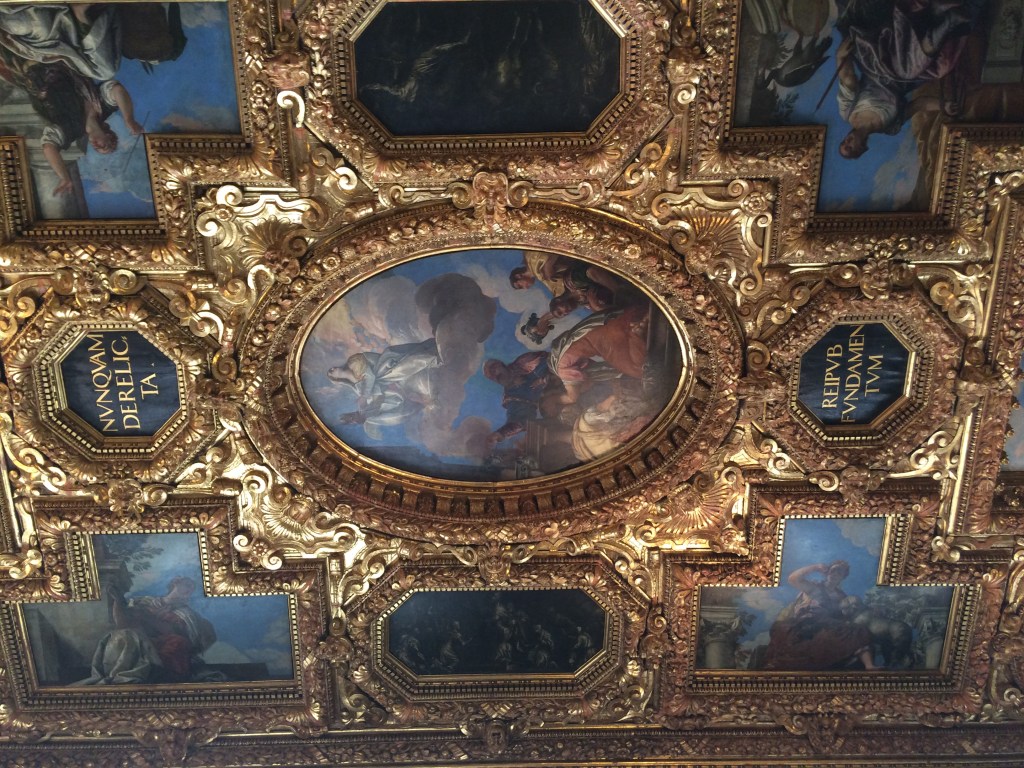 J’ai aussi eu l’occasion de visiter Venise hors d’une croisière. Et je dois reconnaître que sans tous les touristes descendus des bateaux, c’est plus facile d’avoir une opportunité de visiter les monuments les plus connus. Pas le Campanile nécessairement, celui-ci était toujours pris d’assaut et la queue m’a découragée. En revanche, aucune attente pour le Palais des Doges ! Qui vaut vraiment le coup. On comprend mieux en voyant la richesse des des décors dans les salles ouvertes au public ce que pouvait être la puissance de la République de Venise avant que Napoléon mette fin à un millénaire d’indépendance le 12 mai 1797. Et puis aussi, quel phare ce fut pour l’Europe sur le plan culturel une fois que le commerce des épices a décliné suite aux voyages vers le Nouveau monde (pour les européens, ceux qui y vivaient le trouvait quant à eux assez ancien …).